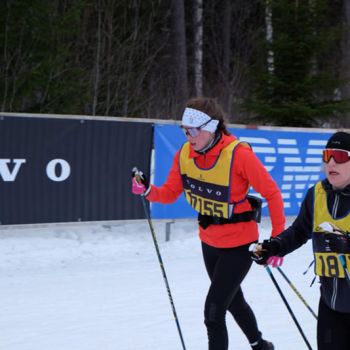 Das Mutter-Tochter-Gespann: „Mama meinte, sie will auch mal mitmachen“, erinnert sich Rina Werder. „Danach haben wir nicht mehr darüber geredet, bis ich sagte: Also machen wir das nächstes Jahr.“ Nun war Kneifen verboten, dennoch bangte Raili Werder um ihren Start. Im vergangenen Juli erlitt sie den zweiten Bandscheibenvorfall, im August wurde sie operiert, erst im November stieg sie ins Training ein. Umso beachtlicher, dass sie den Hauptlauf in klassischer Technik, bei dem das Starterfeld riesig ist, in 8:22:39 Stunden bewältigte und bei den Frauen den 697. Platz belegte. „Damit bin ich aufgrund der Vorgeschichte sehr zufrieden, ich hatte mit etwa neun Stunden gerechnet“, sagt die ehrgeizige Sportlerin. Das Beste: „Ich hatte keine großen Schmerzen, habe mich im Ziel richtig gut gefühlt.“